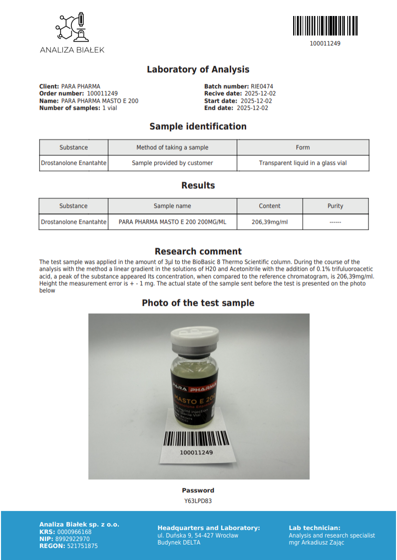| Substance | Drostanolone Enanthate 200mg/ml |
